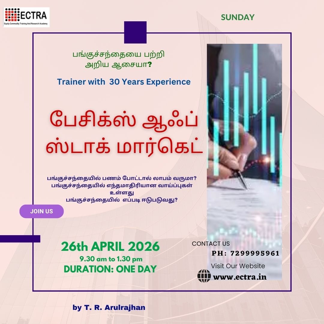 Basics of Stock market Online Training Program: Listing gain: IPO subscription attracts people to make quick profit on listing. Through it, it is another way of earning money in a short term. Better study the company’s fundamentals for long term investment. Online training program by ECTRA T. R. Arulrajhan. Limited seats are available. Book your seat right now through online.