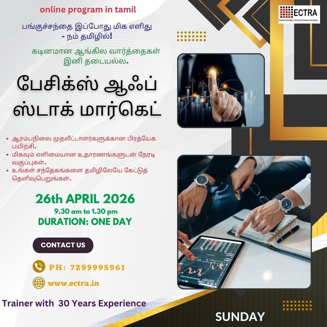 Basics of Stock market Online Training Program: Listing gain: IPO subscription attracts people to make quick profit on listing. Through it, it is another way of earning money in a short term. Better study the company’s fundamentals for long term investment. Online training program by ECTRA T. R. Arulrajhan. Limited seats are available. Book your seat right now through online.