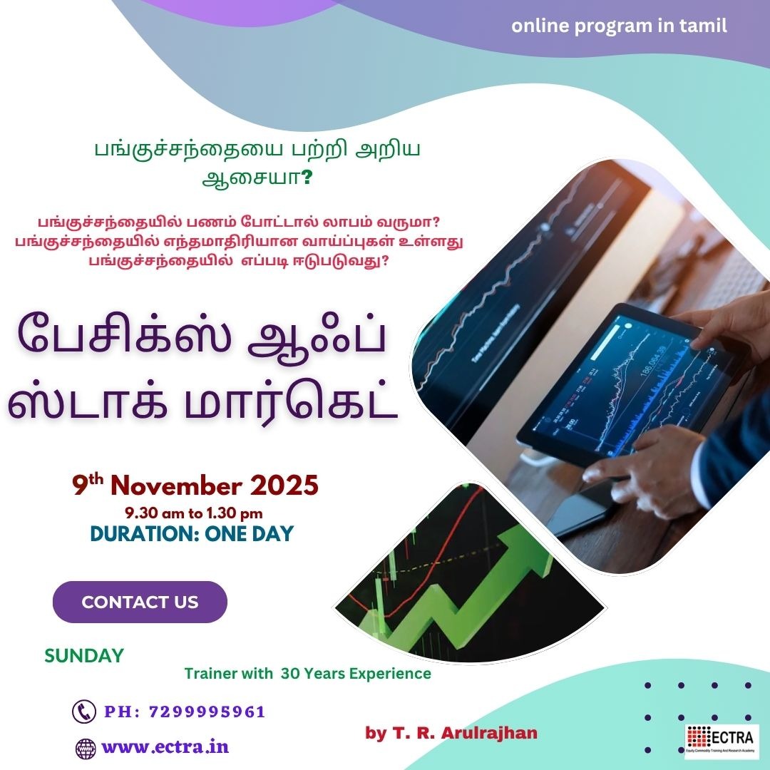 Basics of Stock market Online Training Program: There are various types of orders. When we place a buy order, we hesitate to decide the right place to buy. After buying we hesitate to put the stop loss. When the price moves in our favour, we hesitate to book profit. Learn to put bracket order to initiate emotions free trade. Online training program by ECTRA T. R. Arulrajhan. Limited seats are available. Book your seat right now through online. #stock market#money#trading#investment#forex trader #stocks#investor#business #day trader#profit#wealth #derivatives#learn#intraday#beginners#freshers. #online trading#technical analysis#chart pattern#demat account#stock broking#stockmarket course #sharemarket training