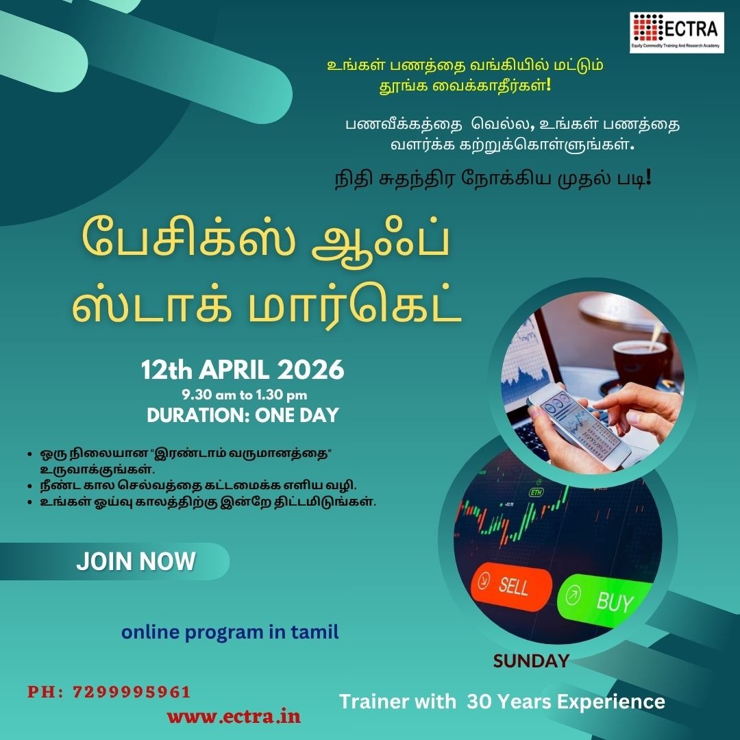 Basics of Stock market Online Training Program: There are various types of orders. When we place a buy order, we hesitate to decide the right place to buy. After buying we hesitate to put the stop loss. When the price moves in our favour, we hesitate to book profit. Learn to put bracket order to initiate emotions free trade. Online training program by ECTRA T. R. Arulrajhan.