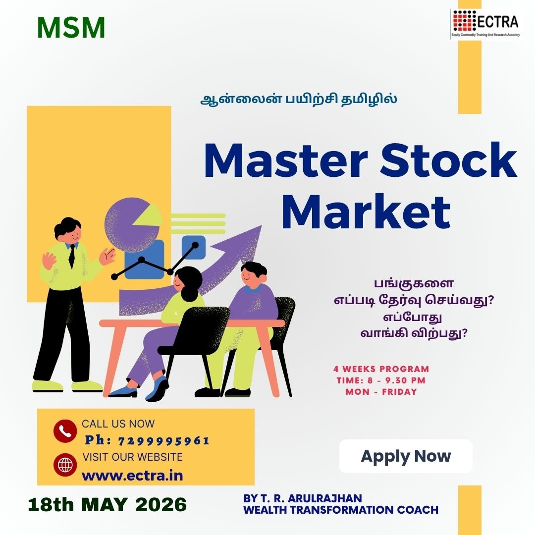 Master Stock market Online Training Program: Stock exchange follow the real-time margin system to ensure the smooth settlement of all trades. In order to follow this system, exchange will always keep the buffer amount collected from the trading members. Understand the stock market features and learn more. Online training program by ECTRA T. R. Arulrajhan. Limited seats are available. Book your seat right now through online.