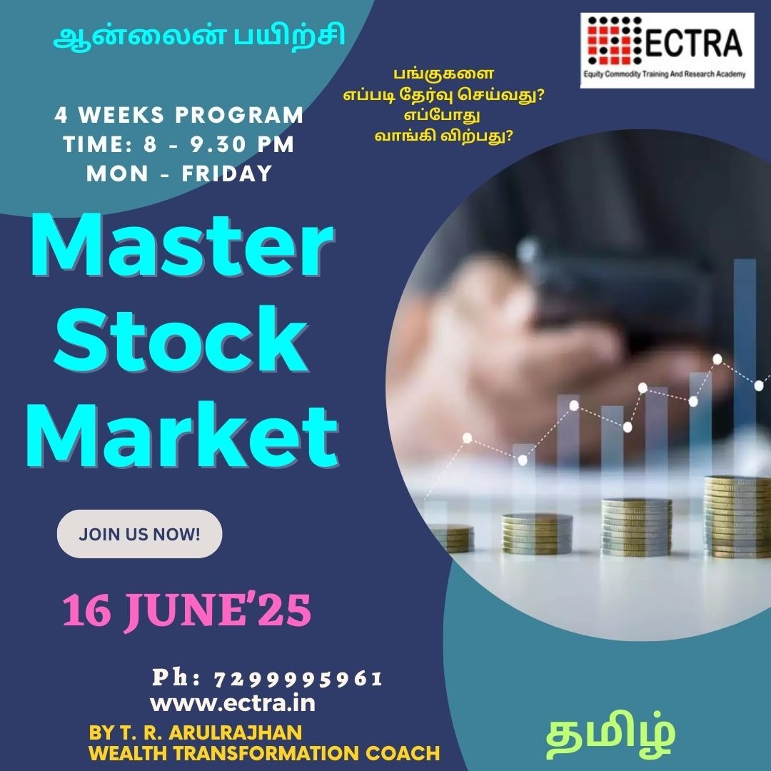 Master Stock market Online Training Program: Stock market is one of the best avenues to create wealth for long term. We need to study the way stock market moves. Online training program by ECTRA T. R. Arulrajhan. Limited seats are available. Book your seat right now through online. #stock market#money#trading#investment#forex trader #stocks#investor#business #day trader#profit#wealth #derivatives#learn#intraday#beginners#freshers. #online trading#technical analysis#chart pattern#demat account#stock broking#stockmarket course #sharemarket training