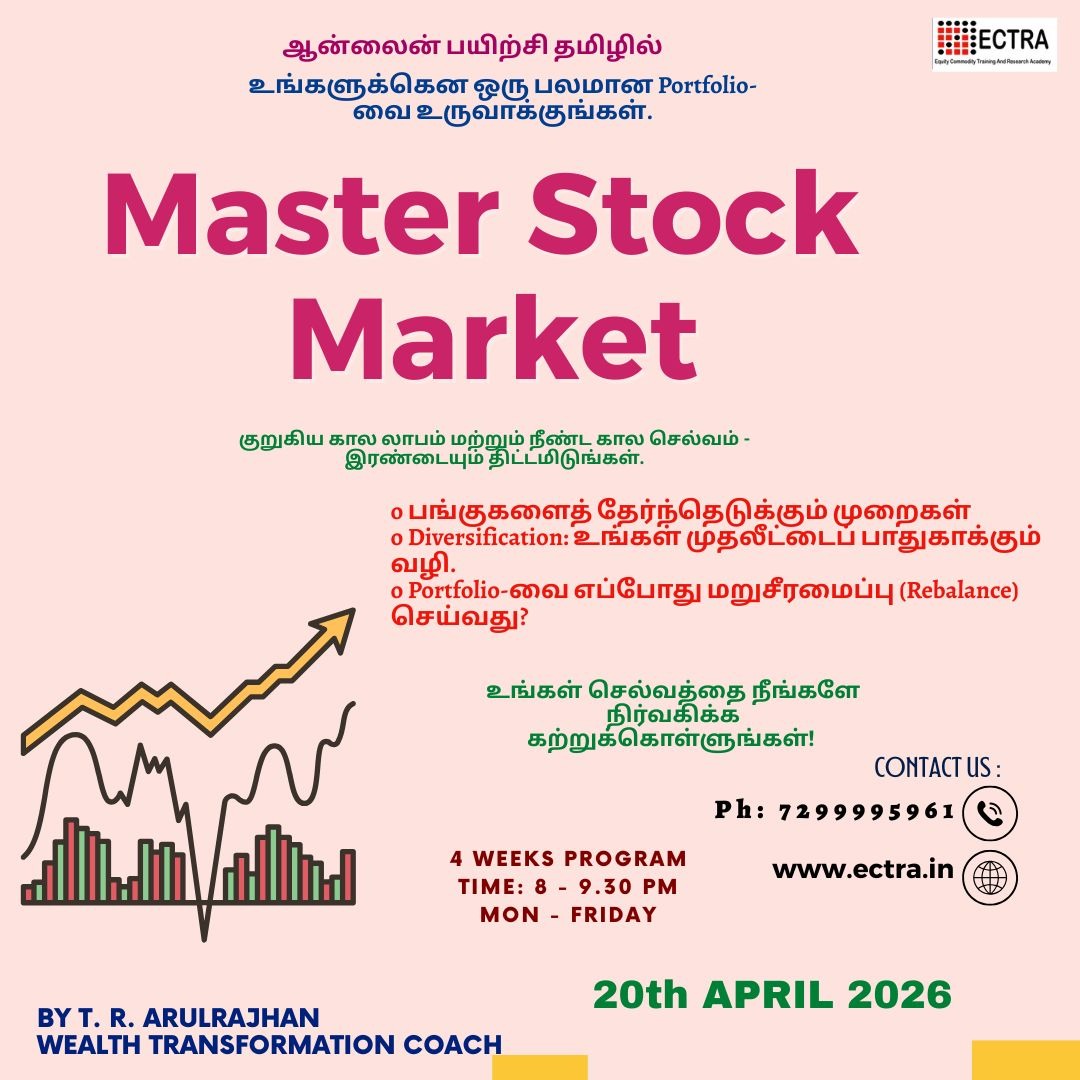 Master Stock market Online Training Program: There are various types of orders. When we place a buy order, we hesitate to decide the right place to buy. After buying we hesitate to put the stop loss. When the price moves in our favour, we hesitate to book profit. Learn to put bracket order to initiate emotions free trade. Online training program by ECTRA T. R. Arulrajhan. Limited seats are available. Book your seat right now through online.