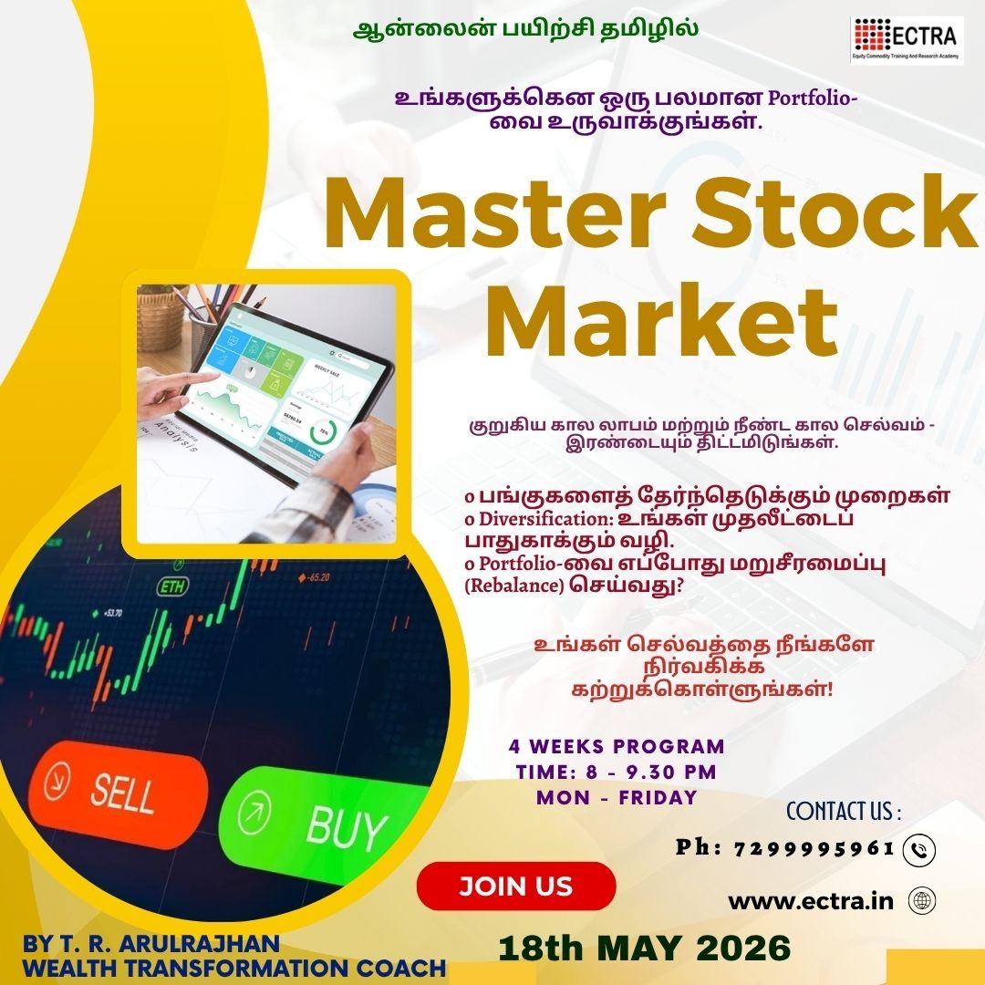 Master Stock market Online Training Program: There are various types of orders. When we place a buy order, we hesitate to decide the right place to buy. After buying we hesitate to put the stop loss. When the price moves in our favour, we hesitate to book profit. Learn to put bracket order to initiate emotions free trade. Online training program by ECTRA T. R. Arulrajhan. Limited seats are available. Book your seat right now through online.