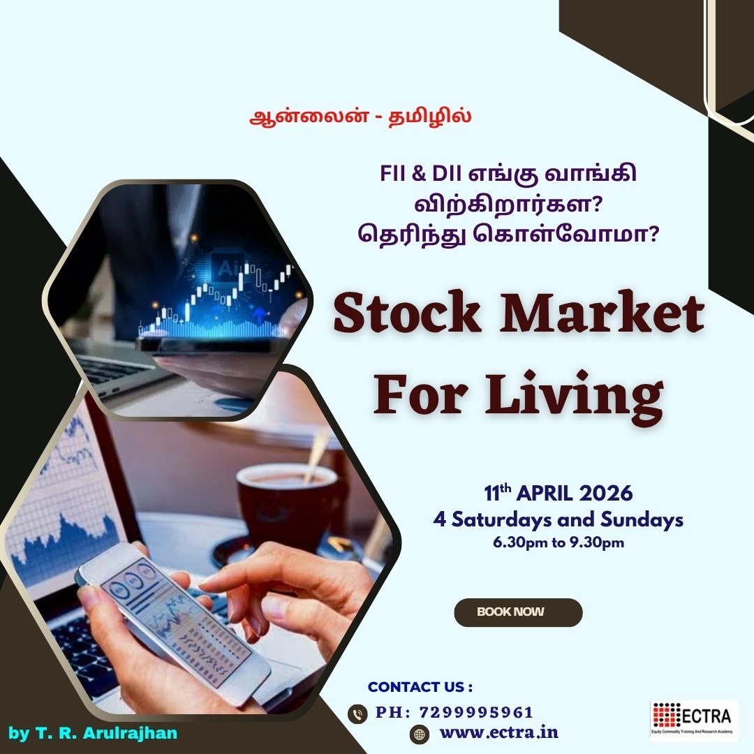 Stock market For Living - SFL Learn the concept and strategy and practice it in live market sessions to earn a second income. Want to go a step higher with Mentor ECTRA T. R. Arulrajhan in intraday and investment? Make use of this opportunity. Online training program by ECTRA T. R. Arulrajhan. Limited seats are available. Book your seat right now through online.