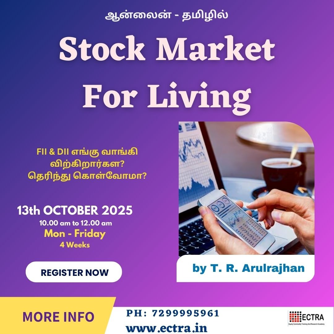 Stock market For Living - SFL SFL-Stock market For Living is not only meant for day traders, but also for swing traders and investors. This concept is applicable for both the activities. So, participant can plan for both creating a technical portfolio and for swing trading. Online training program by ECTRA T. R. Arulrajhan. Limited seats are available. Book your seat right now through online. #stock market#investing#stocks#money#investment#finance #forex#day trade#swing trade#intraday#gold#nifty#sensex #stocks#business#finance#career#profit#one month#live market#price#action#strategy#mentorship#open#chain #analyses#control.