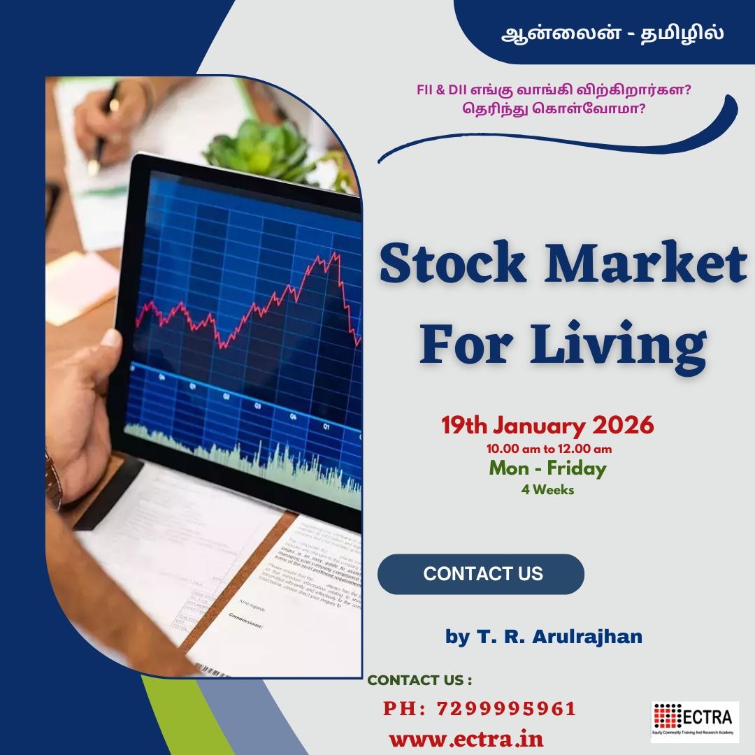 Stock market For Living - SFL Learn the concept and strategy and practice it in live market sessions to earn a second income. Want to go a step higher with Mentor ECTRA T. R. Arulrajhan in intraday and investment? Make use of this opportunity. Online training program by ECTRA T. R. Arulrajhan. Limited seats are available. Book your seat right now through online.